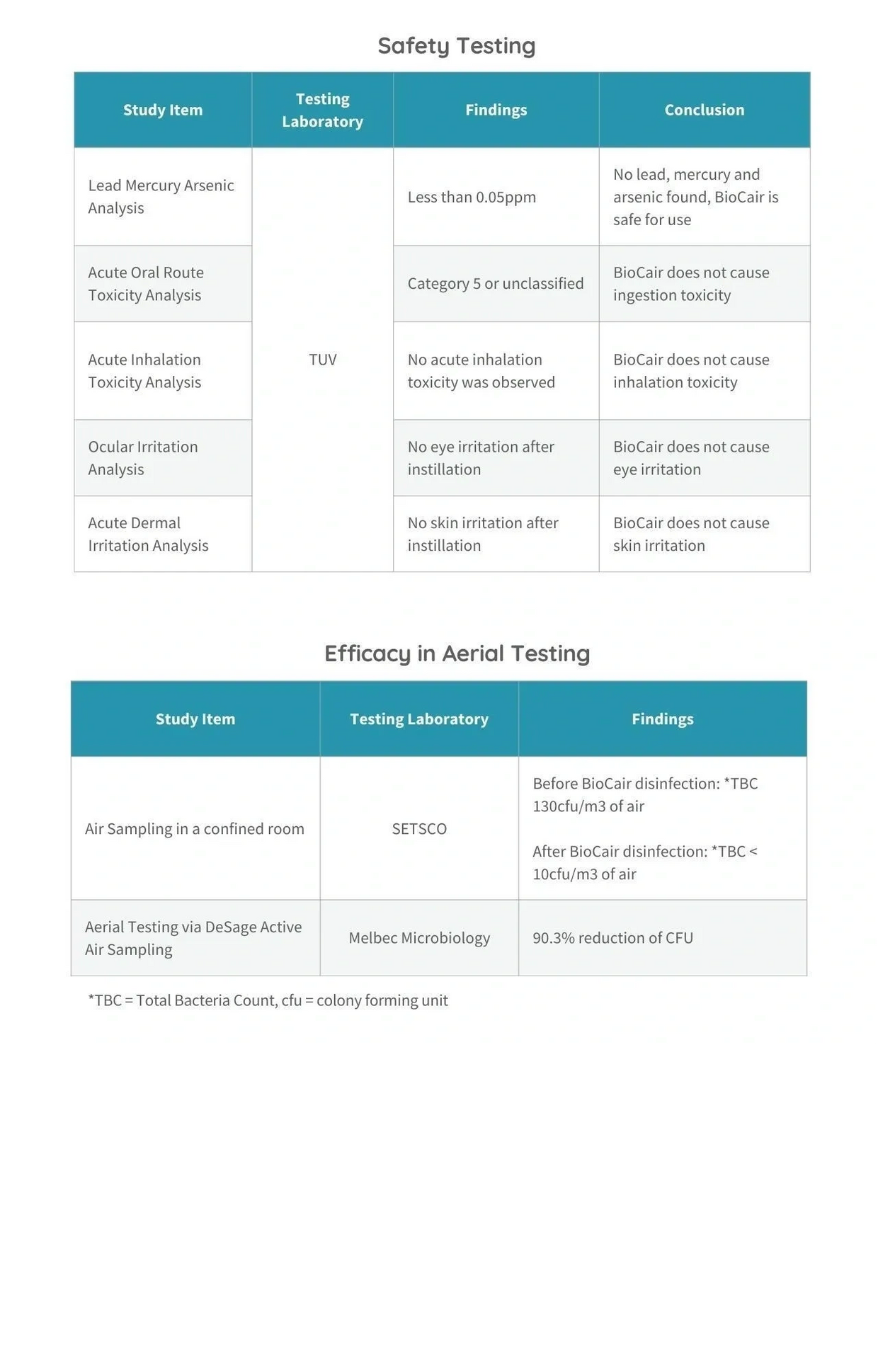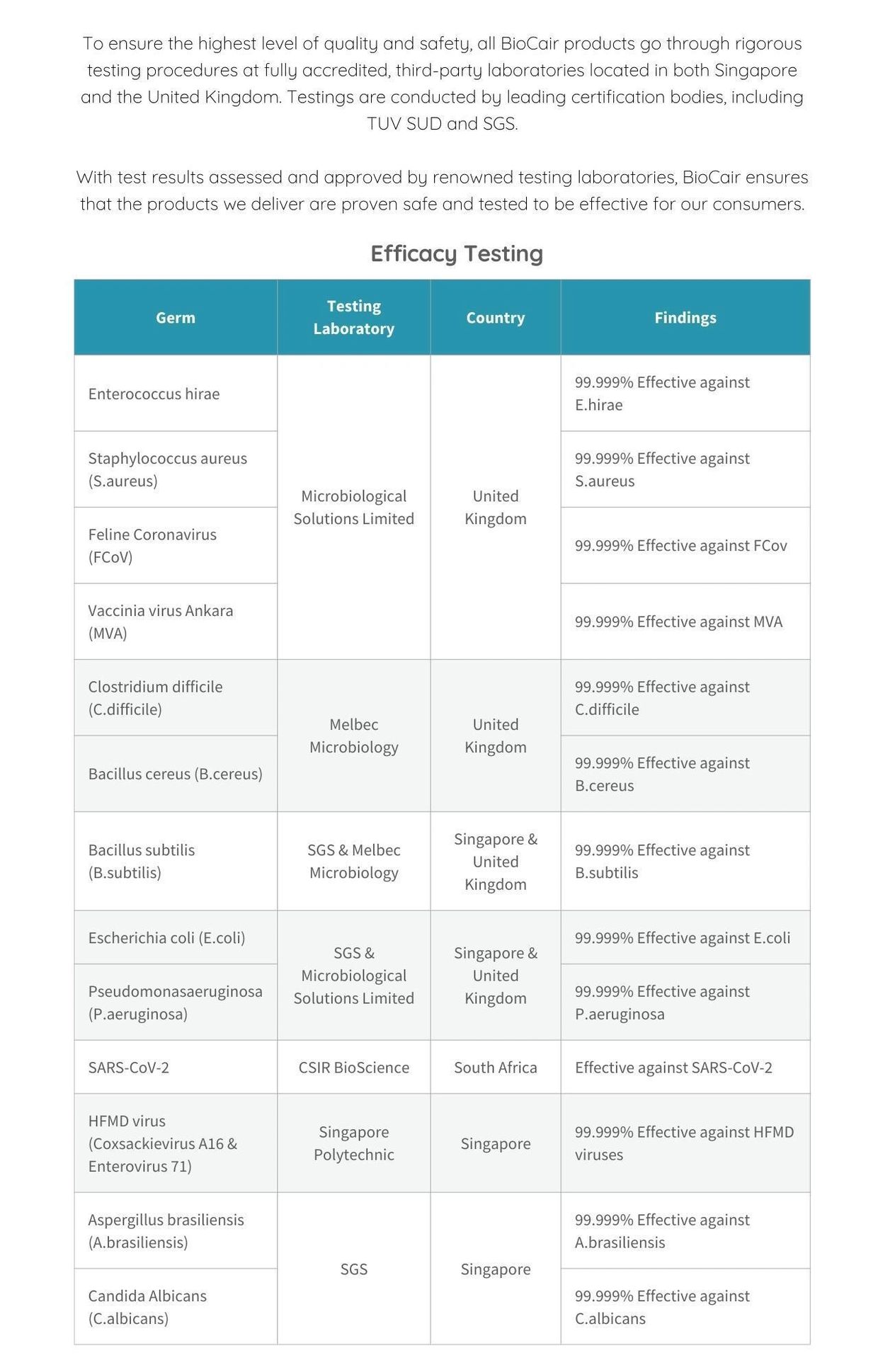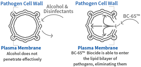 BioCair BC-65 Professional Biocide is a high-level, non-toxic, disinfectant that kills bacteria, virus, fungus and spores on contact by penetrating the plasma membrane lipid bilayer.